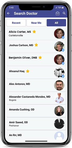 Patients will be able to find and connect with you from the Eye Patient doctor directory.